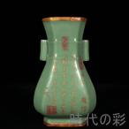 【時代の彩】中国古美術 宋代 龍泉窯 梅子青釉 包口 銘文 貫耳瓶 花瓶 文房置物 茶道具 青磁 工芸品 古陶磁器 珍品旧蔵 古賞物 骨董品 古玩 時代物 R07101131