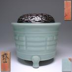 慶應◆帝室技芸員【初代諏訪蘇山】作 青瓷 算木香炉 純銀雲透火舎 共箱付