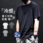 メンズインナー tシャツ 肌着 夏用インナー 接触冷感 2枚組 薄い 軽量 ゆったり 暑さ対策 吸汗 冷感 運動着 無地 夏アイテム