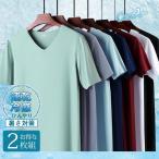2枚組 ストレッチ 接触冷感 Tシャツ カットソー 半袖 メンズ 夏用 Vネック 吸汗速乾 伸縮性 普段着 スポーツ 下着 トップス 快適