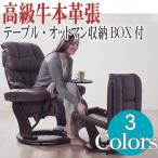 リクライニングチェアRC8800S高級牛本革張り(サイドテーブル・収納ボックス付オットマン付) 選べる3色