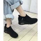 「SKECHERS」 スリッポン 24.5cm ブラック×ブラック レディース