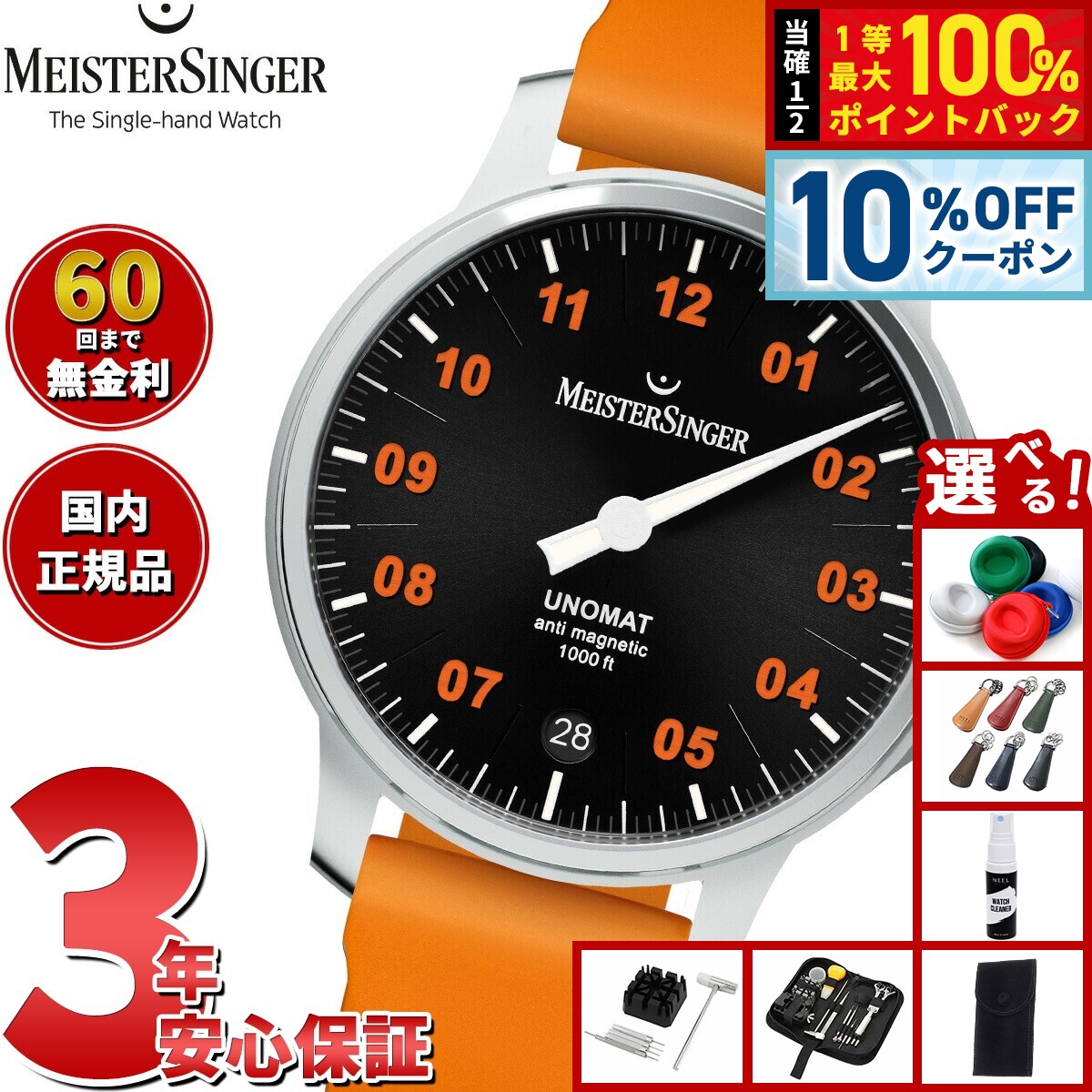 【2/1限定!10%OFFクーポン&抽選で最大10000ptバック】【選べるノベルティー付き】【60回分割手数料無料!】マイスタージンガー MeisterSinger ウノマット ブラック&オレンジ Unomat Black with Orange 自動巻き 腕時計 メンズ UN902OLU