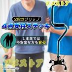 4点杖 ステッキ 2段グリップ 杖 多点杖 5段階調節 80-93cm アルミ製 軽量 頑丈 2段式 立ち上がり 歩行補助 立位補助 リハビリ プレゼント