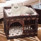 ねこちぐら 2段 猫ベッド キャットハウス 籠 籐 カゴ ラタン製 ペットベッド バスケット ちぐら 昼寝 ペットハウス S マット&蓆付き