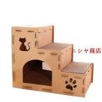 猫 爪とぎ ハウス 3段式 キャットタワー ダンボールハウス 組み立て式 ベッド 兼用 高さ52 横63 奥行40cm キャットハウス 運動不足解消