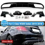 【並行輸入品】W205 AMGスタイル ブラック リアバンパーディフューザー メルセデス W205 Cクラス クラシックモデル 2015-2018 4アウトレット エキゾーストチ