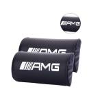送料無料 Benz メルセデスベンツ AMG用 2個セット 車載 車内 クッション ネックパッド 刺繍ロゴ 首枕 ロゴ入り 快適 ブラック カーボン調
