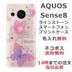 AQUOS Sense8 SH-54D SHG11 SH-M26 アクオスセンス8らふら 名入れ スマホケース ラインストーン フライングバタフライ