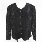 未使用品 L'AUBE du NONA 花柄 フラワー ノーカラージャケット 薄手 ベロア ベルベット 13 黒系 ブラック シースルー 透け感 肩パット タグ