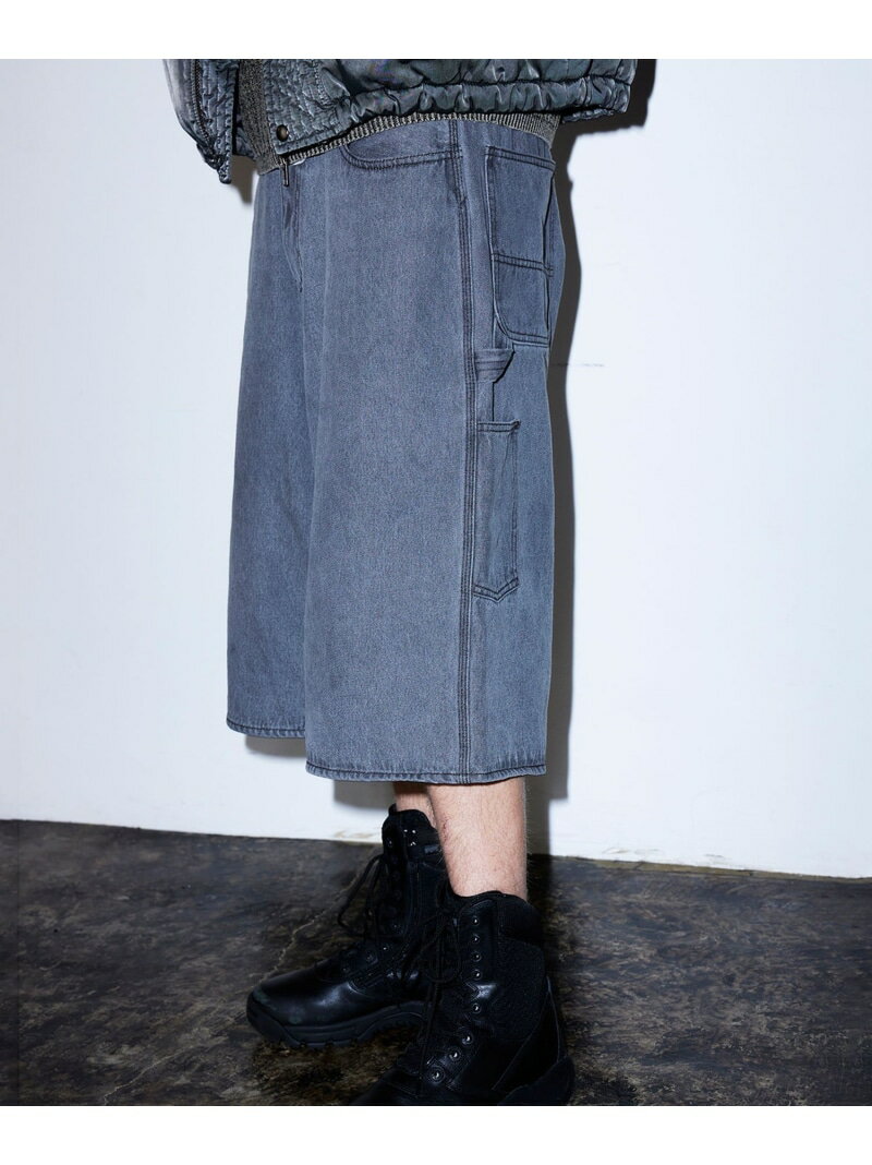 【SALE/40%OFF】BEAMS ワイドストレート クォーターレングス ペインターデニム ビームス メン パンツ ジーンズ・デニムパンツ グレー ネイビー【送料無料】