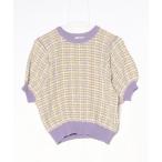 「BEAMS HEART」 チェック柄半袖ニット FREE パープル レディース