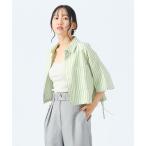 ブラウス シャツ ストライプ柄 ドロスト ハーフスリーブシャツ レディース