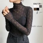 トップス レディース ハイネック レイヤード インナー 重ね着 韓国ファッション おしゃれ レース Tシャツ 薄手 伸縮性