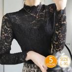 レース チュール トップス ハイネック レースインナー 立ち襟 長袖 トップス Tシャツ 重ね着 伸縮性 透け感 春服