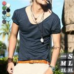 Tシャツメンズカットソープルオーバーシャツ無地Vネックインナー大きいサイズ半袖トップス切りっぱなしカジュアル深Vネック