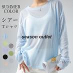 シアー トップス レディース tシャツ 長袖 夏 レイヤード 重ね着 シアー Uネック Tシャツ 透け感 シースルー uvカット