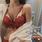 ブラショーツセット レース ダブルストラップ ブラジャー ショーツ セット ランジェリー インナー 下着 レディース リボン 花柄 谷間寄せ 美胸 大