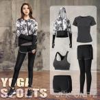 スポーツウェア レディース 5点セット 上下セット ストレッチ抜群 ジムウェア ヨガウェア パーカー Tシャツ ブラ パンツ