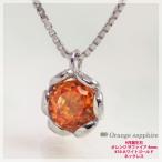 オレンジサファイア ネックレス フラワー ペンダント 10金 K10ホワイトゴールド 9月誕生石