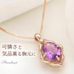 ネックレス アメジスト 5×8mm 半貴石 オーバルカット ダイヤモンド0.01ct カラット K18ピンクゴールド 2月誕生石