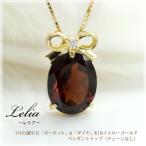 ガーネット 大粒10x8mm ダイヤモンド リボン ペンダントトップ 18金 K18イエローゴールド 1月誕生石