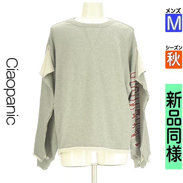 \秋冬物20%OFFクーポン対象×ポイント10倍/チャオパニック CIAOPANIC スウェット パーカー メンズ 秋 長袖 グレー M オーバーサイズスウェット 【中古】【古着】【人気】