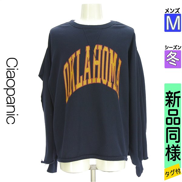 \秋冬物20%OFFクーポン対象×ポイント10倍/チャオパニック CIAOPANIC スウェット パーカー メンズ 冬 長袖 紺色/ネイビー M オーバーサイズロゴスウェット 【中古】【古着】【人気】