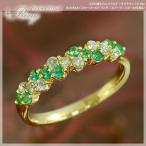 エメラルド 8石 ダイヤモンド 5石 計0.1ct ハーフエタニティ リング 指輪 K10 K18イエローゴールドレディース 天然石 5月誕生石