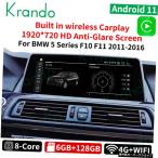 Krando Android 11.0 10.25'' BMW5シリーズF10F11用カーマルチメディアDVDプレーヤー2011-2016ワイヤレスCarplayGPSヘッドユニットタブレット
