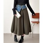スカート 裾ドロストデニムドッキングバルーンスカート