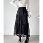 スカート パイピングチュールフレアロングスカート