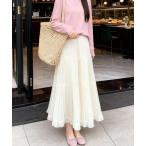 スカート 裾フリルチュールプリーツスカート