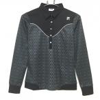 フィラゴルフ 長袖ポロシャツ 黒×グレー 変形格子柄 レディース M ゴルフウェア FILA GOLF