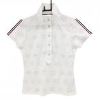 【美品】フィラゴルフ 半袖ポロシャツ 白 総柄織生地 胸ワッペン レディース M ゴルフウェア FILA GOLF