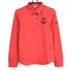 フィラゴルフ 長袖ポロシャツ レッド 星柄地模様 ロゴネイビー 微起毛 レディース L ゴルフウェア FILA GOLF