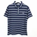 フィラ FILA ポロシャツ カットソー トップス ボーダー ロゴ刺繍 半袖 ショートスリーブ ポリ×綿 L ネイビー 紺 メンズ 男性