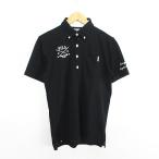 フィラ FILA GOLF ポロシャツ 半袖 ボタンダウン ロゴ 地模様 M ブラック ※EKM メンズ