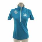 フィラゴルフ FILA GOLF ポロシャツ ハイネック ハーフジップ 半袖 速乾 ロゴプリント 配色 ブルー系 青系 ホワイト 白 M レディース
