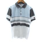 フィラ FILA ポロシャツ 半袖 ポロカラー ボーダー柄 34 XS マルチカラー 水色 ライトブルー グレー /SM13 メンズ