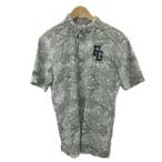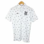 フィラ FILA GOLF 美品 ボタンダウン ポロシャツ ゴルフウェア 飛び柄 半袖 アップリケ M 白 ホワイト /X メンズ