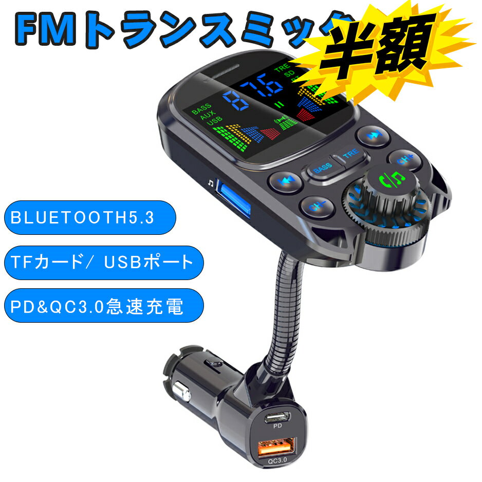 【 MAX 50%OFF!超目玉商品】Bluetooth5.3新登場 FMトランスミッター Bluetooth5.3 車載FMトランスミッター PD 30W+QC3.0急速充電 車載充電器 ハンズフリー通話 Bluetooth/U-ディスク対応 2つの音楽再生モード12V-24V車対応 LEDディスプレイ LEDランプ