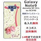 Galaxy Note9 ケース SC-01L SCV40 ギャラクシーノート9 カバー ラインストーン かわいい らふら 名入れ ローズレース