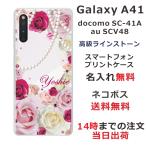 Galaxy A41 ケース SC-41A SCV48 ギャラクシーA41 カバー ラインストーン かわいい フラワー 花柄 らふら 名入れ 押し花風 ローズダークピンク