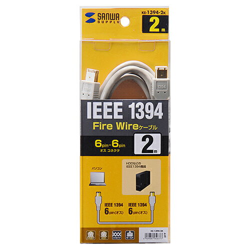 サンワサプライ|SANWA SUPPLY IEEE1394ケーブル(6pin-6pin・2m・ライトグレー) KE-1394-2K[KE13942K]