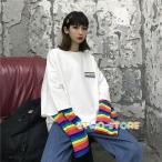 トレーナー レディース 長袖 おしゃれ ゆったり 秋冬 トップス 新作 韓国系 原宿系 ヒップホップ K-POP ダンス ストリート カジュアル 柄 レインボー