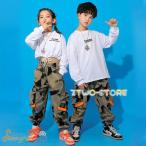 ダンス衣装 キッズ 長袖 白 黒トップス 迷彩パンツ セットアップ子供服 ヒップホップ ダンス発表会 男女兼用 男の子 女の子 hiphop K-POP jazz 110〜180cm