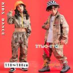 キッズダンス衣装 ヒップホップ セットアップ 迷彩 カモフラージュ ウィンドブレーカー 男の子 女の子 ガールズ へそだし ジャケット パンツ K-POP 韓国