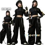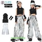 キッズ 子供服 ヒップホップ 黒 ダンス衣装 シルバー 女の子 ダンス衣装 ズボン 長パンツ 男の子 無袖 k-pop 演出 原宿系 カッコイイ おしゃれ レッスン