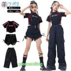 k-pop 衣装 キッズ ダンス衣装 セットアップ パンツ ショート丈 シャツ 黒 半袖 韓国 衣装 トップス ヒップホップ 女の子 キッズ ダンス衣装 子供 演出